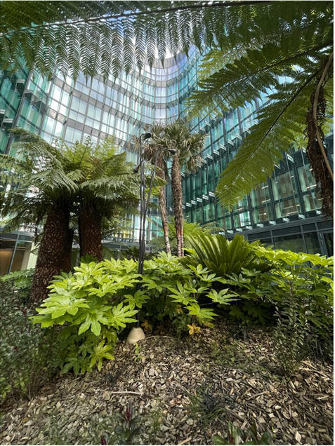 Nous avons eu la possibilité de réaliser des œuvres pour la célèbre enseigne : L’Oréal. Pour ce chantier, nous sommes passés par l’étape de conception puis de la réalisation dans l’optique de revisiter leur siège social. Il s’agit d’un jardin verdoyant au cœur d’un patio, entre courbes et hauteurs, graphisme et volume. Les jardinières en acier Corten contractent avec la couleur des végétaux.