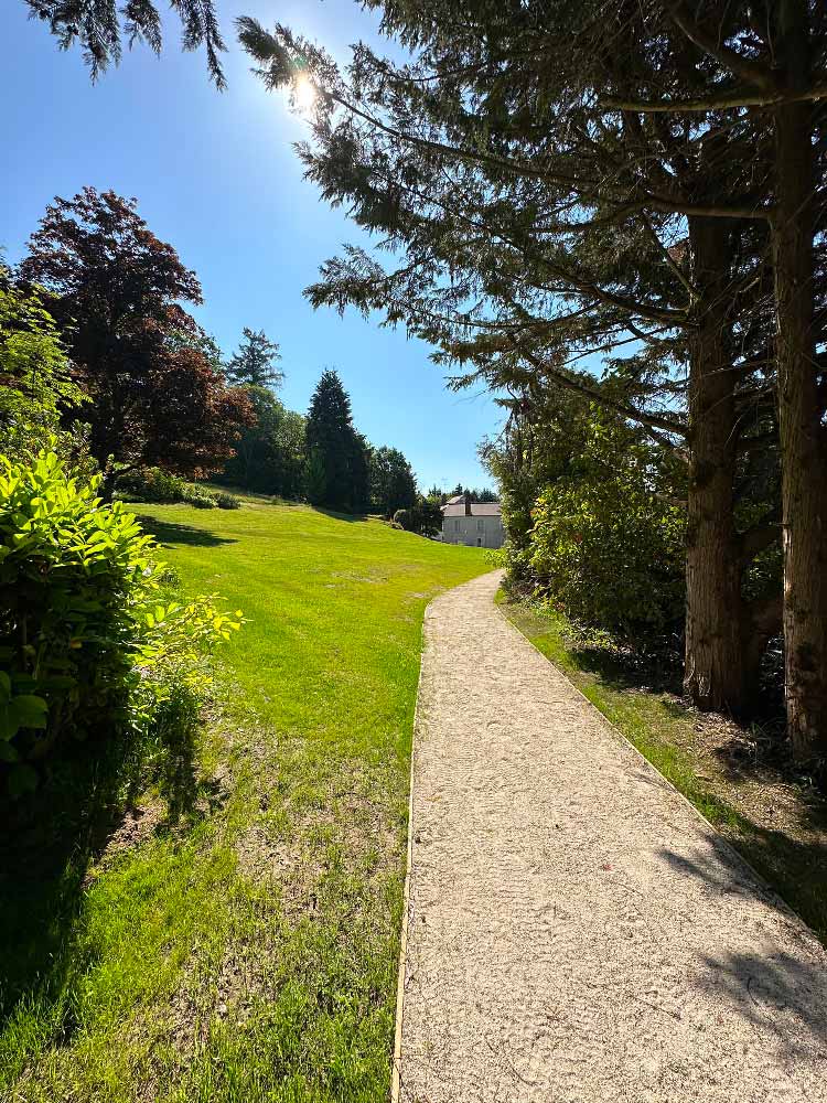Entre les deux, le jardin, accueillant, invite au repos. Un arrêt pour mieux contempler la beauté des arbres qui attirent immanquablement au loin.