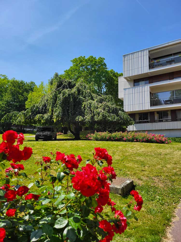 Face à une architecture de renom, signée Xavier et Luc Arsène-Henry, notre intervention se fait discrète et attentive. Nous n’intervenons pas sur l’œuvre bâtie, mais nous en prolongeons l’esprit à travers un entretien paysager rigoureux et sensible.