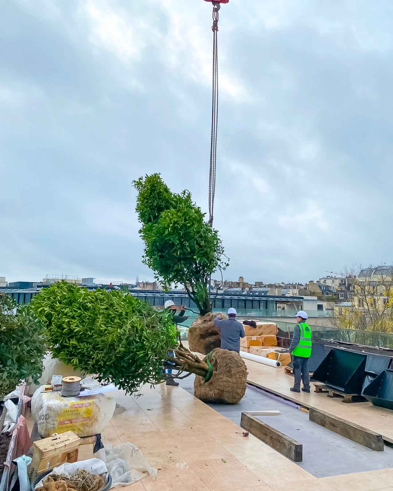 Le grutage en hauteur ne s’improvise pas. Il mobilise des compétences spécifiques : lecture de l’environnement, coordination entre les équipes au sol et en hauteur, maîtrise du matériel. L’objectif est toujours le même — que chaque végétal arrive à destination en parfait état, prêt à être intégré à l’aménagement.