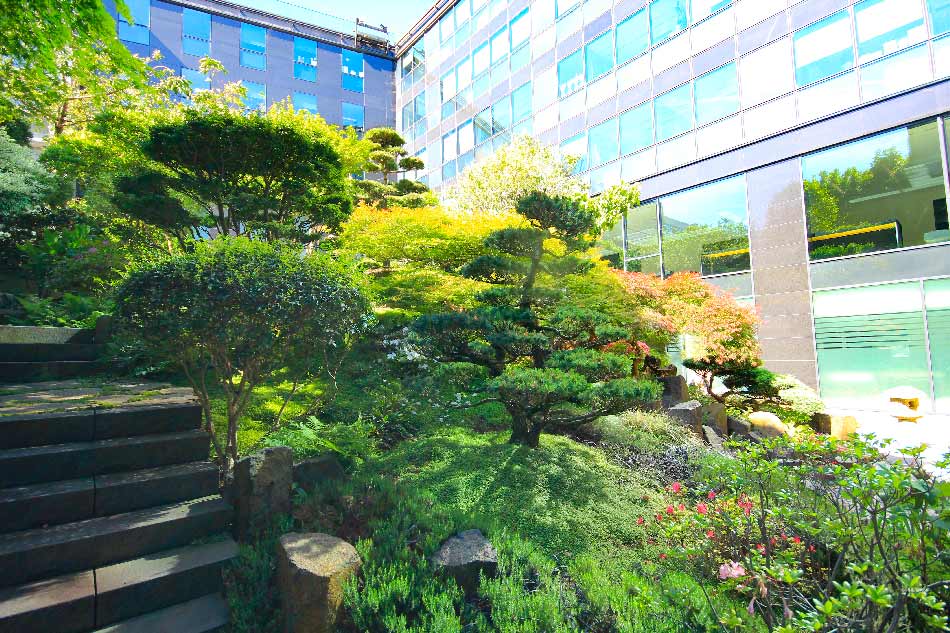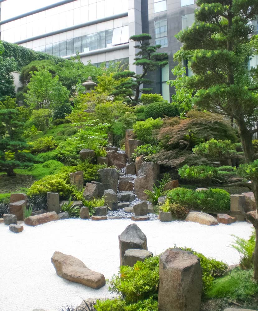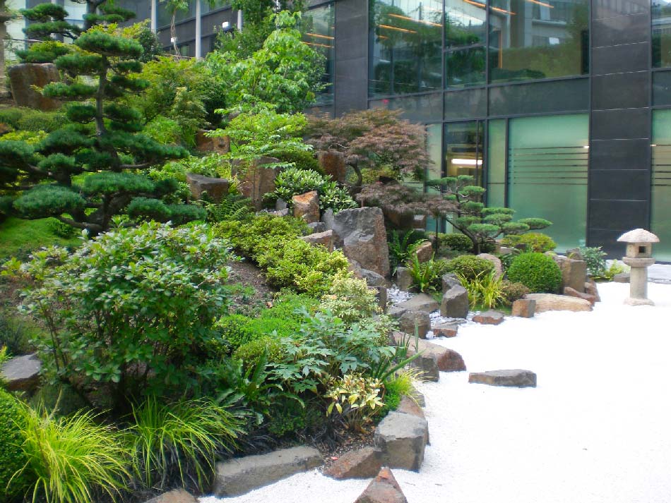Ce jardin a été pensé, dessiné et réalisé pour les bureaux d’une maison de haute couture, à Neuilly. Véritable havre de paix, de verdure aux ambiances japonaises. Lieu de contemplation qui se donne à voir au fil des saisons et où les énergies semblent cohabiter. Le travail minutieux de dessin, dans les graviers, vient souligner les courbes du jardin. Les jeux d’ombres et de lumière, dans le patio, révèlent tout au long de la journée de nouvelles formes, de nouveaux volumes ainsi que de nouveaux végétaux.