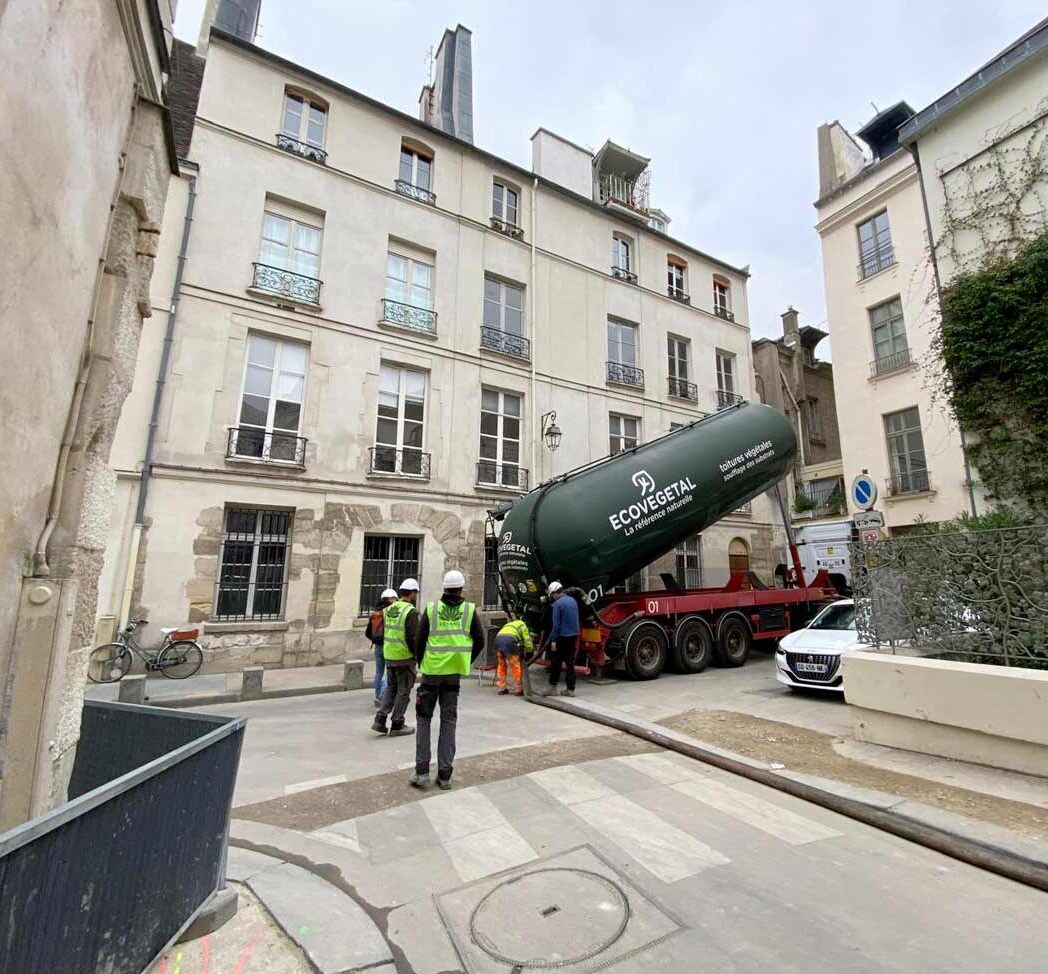Lors d’une récente intervention à Paris, cette méthode a permis d’acheminer 30 m³ de terre jusqu’au 6ᵉ étage en une seule matinée. Un chiffre qui illustre bien l’efficacité de la technique dans des environnements urbains contraignants, où chaque mètre carré et chaque heure comptent.